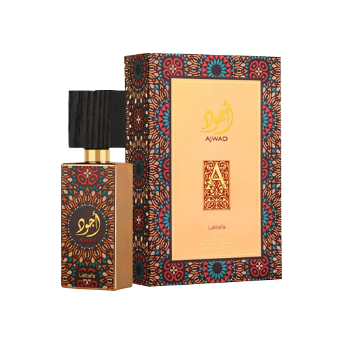 Ajwad de Lattafa Perfumes es una fragancia de la familia olfativa Amaderada Aromática para Hombres y Mujeres. Ajwad se lanzó en 2021. La Nota de Salida es notas afrutadas; las Notas de Corazón son rosa y jazmín; las Notas de Fondo son vainilla, almizcle, ámbar y cedro.